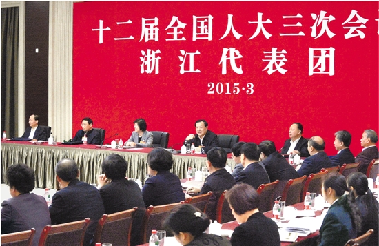 全国人大常委会副委员长、全国妇联主席沈跃跃和省委书记、省人大常委会主任夏宝龙,省委副书记、省长李强,省人大常委会副主任姒健敏等参加审议。省人大常委会副主任茅临生主持会议。