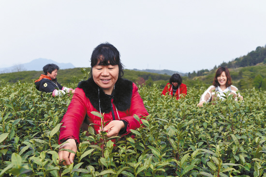 昨日,在黄岩区头陀镇前陈村龙灵尖茶场,6名采茶女腰系茶篓,娴熟地采摘刚长出的第一茬嫩芽。据该茶厂厂长黄华杰介绍,现开摘的是笫一拨早春茶,采摘量还不大,本地春茶大面积采摘还要看天气情况。