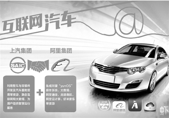 昨天,阿里巴巴集团与上海汽车集团宣布,共同出资10亿元设立“互联网汽车基金”,并组建合资公司,专注互联网汽车的技术研发。双方合作的首款互联网汽车产品有望2016年上市。