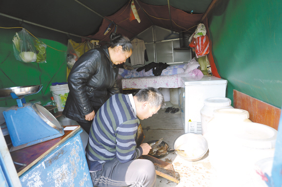 一个简陋的棚子就是鲁师傅和妻子临时的家了。