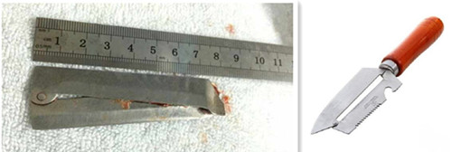 鱼刺、硬币、枣核、假牙、笔帽、鸡骨头、戒指……被人不慎吞下的异物可谓五花八门,不过这些和李大爷吞下的东西一比就小巫见大巫了。上周,59岁的李大爷吞下了一把8.5厘米的刨刀!万幸的是,刀子没有刺破食道,而是进入了李大爷的胃里,仅对食道造成了一些纵向的切割伤。