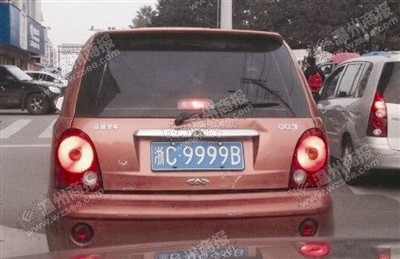 原标题: 土豪车牌都“落魄” 浙C·9999B挂在奇瑞QQ上