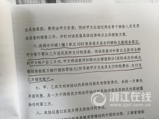 2009年下半年,滨江区人民法院二次开庭,邬先生和旅游之都房产公司双方协商,买卖合同解除并撤销备案,开发商暂不退还房款,待房子再次出售后,除原房款外,溢价或不足部分扣除应纳税费后,再全部交给邬先生。