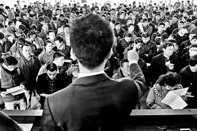 在拍卖会接近尾声时,记者对场内外人群进行了随机采访。在场外等候的人有的是等待接下来的拍卖,但更多的是放弃竞拍的人。在记者随机询问的20个竞拍者中,一半以上的人都表示此次拍卖价格太高,最终都放弃了参与竞拍。