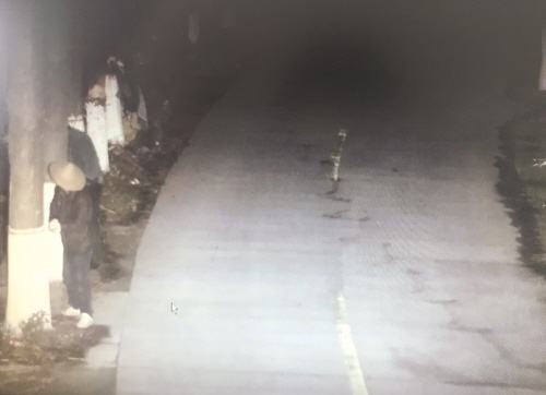 随后,记者前往章安派出所,办案民警播放了一段从现场附近监控调取的录像。从监控中可以清晰地看到,在3月7日18点53分,砍树路段出现了两名男子,一名头戴斗笠、着白手套的男子手执锯子;另一名男子则拿着一把砍刀。