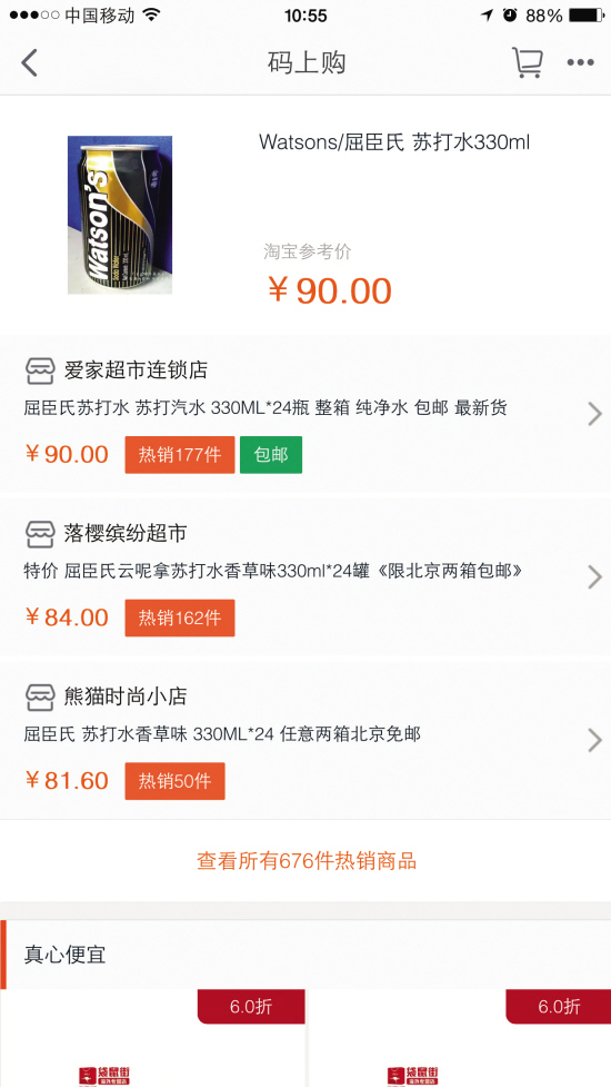 据了解,在不同场景下,“扫码”可以满足不同人群的需求:比如之前有线下购物、线上购物,现在扫一扫身边商品上的条形码,就可以在线购物,这对于纠结实体店商品价格的人、在超市看中物品拎不动的人、看中一款外国商品语言不通的人是极大的福音。与此同时,“扫码”得到的不仅有不同商家的价格、同类商品的推荐,还有商品外延的更多信息。