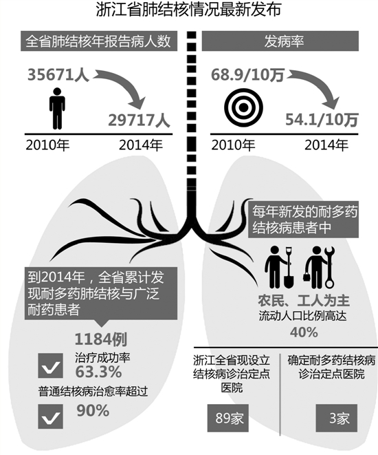 耐多药结核即是难治的结核,为何流动人口中较多?浙江省疾控中心副主任蒋健敏说,普通结核病治愈率可以达到90%以上,但如果病人不按照规定服药,甚至间断了治疗,就会导致结核菌对药物产生耐药。