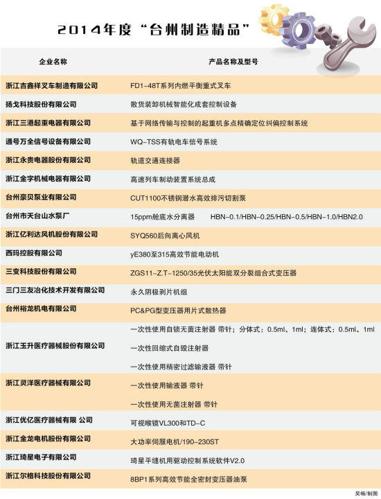 原标题: 22件“台州制造精品”上榜