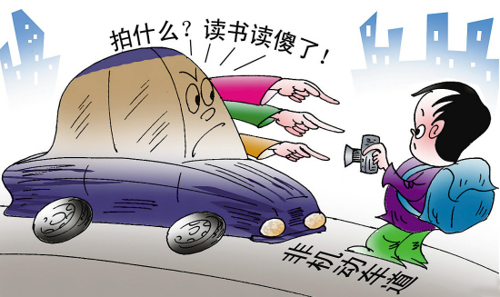 近日,一则名为“汽车占自行车道,初中生拍照被骂”的视频备受网友关注。一名网友上传的视频显示,在北京海淀区双安商场附近的一处天桥下面,一名初中生用手机拍摄了一辆占用非机动车道的私家车,遭到私家车上3女1男集体下车“围攻”。虽然整个事件孰是孰非目前尚无法彻底理清,但私家车占用非机动车道以及“读书读傻了”的话题再次引发网友的讨论。陶小莫/漫画