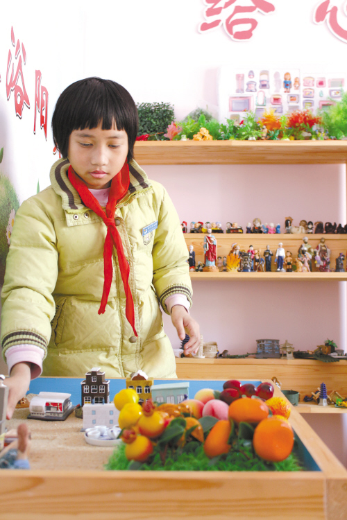 负责心理教育的何老师说,一米见方的沙盘,无意间透露出小女孩的心理变化。“三年前,她有自闭症,有厌学情绪,如今,在班主任杨婷的帮助下,逐渐恢复自信。”