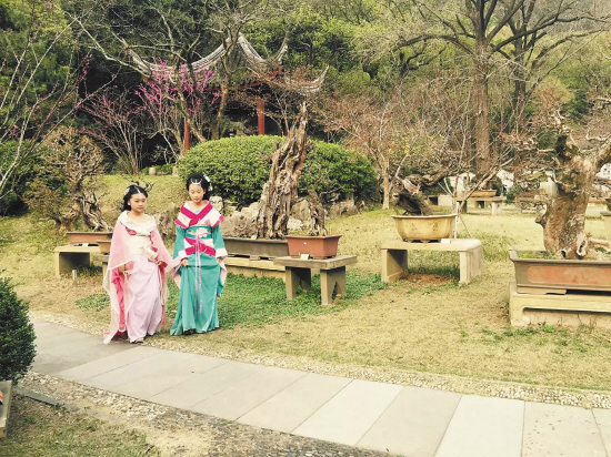 一个周末温暖的午后,身着古装的孩子们走进黄岩九峰公园报春园中,诵读古诗,在春光中来了一次浪漫的穿越。