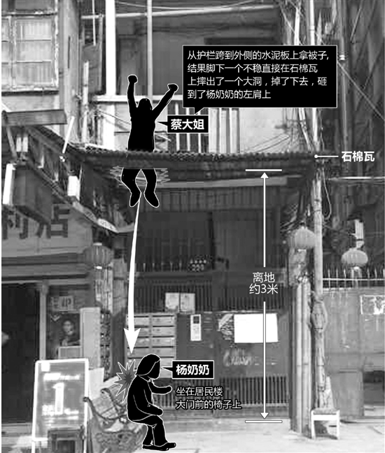 原标题: 二楼掉下一个收被子的蔡大姐 砸中了楼下给儿子占车位的杨奶奶
