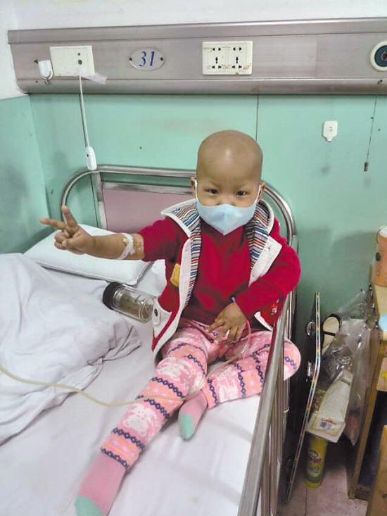 2014年5月,谢林萍发现三岁的女儿程程口中有出血点,刚开始谢林萍以为女儿得了手足口病,于是她就带着程程去了当地的医院看。可过了不久,程程的腰部开始出现淤青,这下,谢林萍慌了。8月22日,小程程被确诊为急性粒细胞白血病。