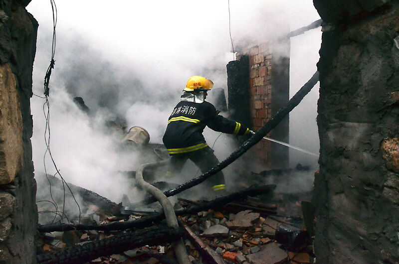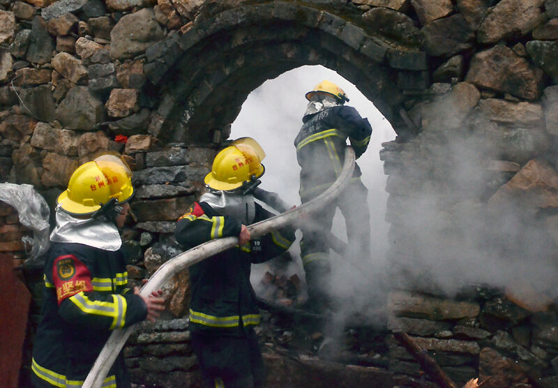 2时45分许,消防官兵到达现场,只见起火建筑为一间砖木结构的连体房,房顶已经被烧塌,屋内堆满柴火。先抵达现场的3支专职消防队已经展开灭火行动,并成功控制火势。