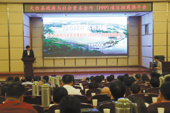 4月3日下午,天台县政府与社会资本合作(ppp)项目招商推介会在该县举行。据了解,此次推介会分为PPP项目推介和招商对接。PPP项目总计30个,分别是文化、教育、卫生项目等。