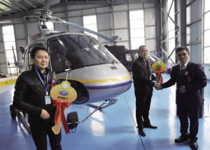 在开业仪式上,2架AS350B3E直升机正式交付给来自湖北的两名购买者。这款直升机还有一个很萌的名字,叫“小松鼠”。