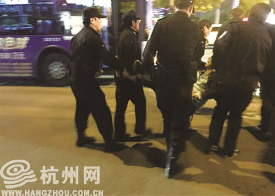 不一会,又有民警赶到了,几个警察一同把醉酒者抬上了警车。
