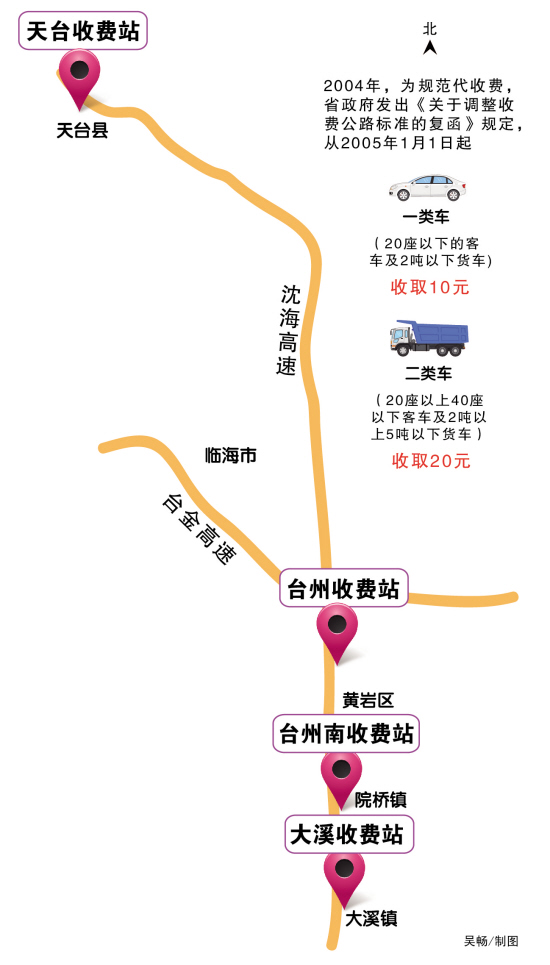 据了解,台州高速公路集团股份有限公司在台州境内有3个高速收费站在收取代收费,分别是温岭的大溪收费站、黄岩院桥的台州(南)收费站、黄岩的台州收费站。大溪收费站代收大石(大溪至石粘)一级公路的费用;台州(南)收费站代收院路线(院桥至路桥)一级公路费用;台州收费站代收原82省道黄岩收费站费用。另外,上三高速新天管理处管辖的天台收费站代收104国道天台段费用。甬台温高速公路台州公司营运管理部称,该公司在台州境内的收费站都不存在代收费。