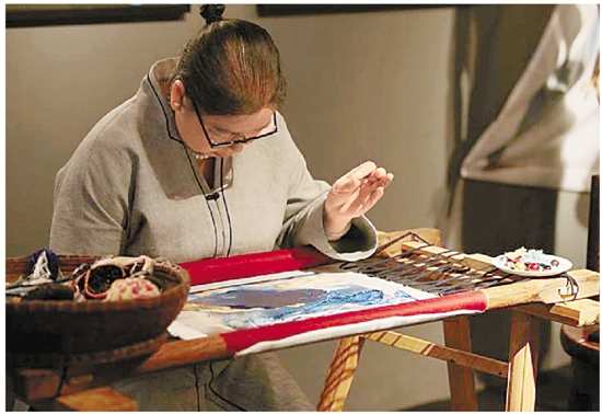 成为“馆服”不能说是巧合,而是雅莹多年来秉持的精神和世博相契合。为了呼应世博会“滋养地球,为生命加油”的主题,雅莹汲取了中华民族亲水的文化基因,从“天、地”自然角度出发,举办了以“敬自然”为主题的手稿展,团队将古法、自然、科技技术应用在华服之上从而向自然致敬,田玲向记者介绍她的灵感与创意:天空的色彩变化,云卷云舒的形态,纯净水滴的跃动,被滋润的泥土……美好的世界里,蝴蝶在飞舞,歌颂生命的美好,也感谢自然的馈赠。她采用了大量的手绘和手工针刺拉毛、刺绣编结等传统手工艺,运用立体裁剪、3D印花、原生态羊毛及生丝,天然的藤竹纤维及原麻等,所有材料以本原的状态呈现灵动的自然。