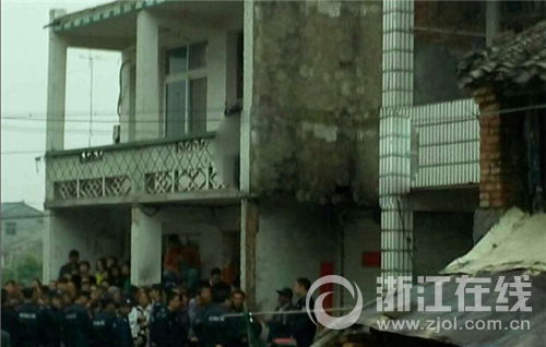 警方在现场取证调查,左边为晨晨家。