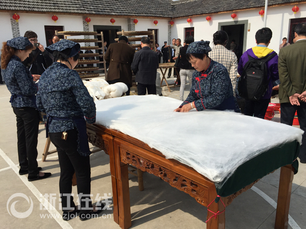 村民在文化礼堂内展示民间技艺