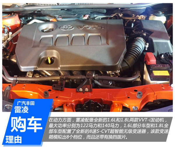 在动力方面,雷凌配备全新的1.6L和1.8L两款VVT-i发动机,最大功率分别为122马力和140马力。
