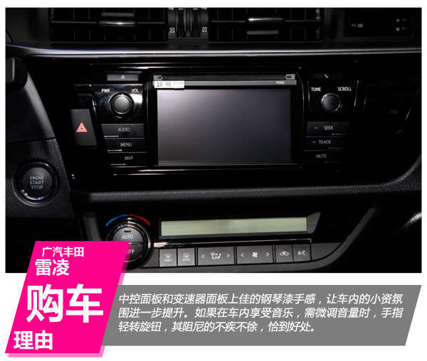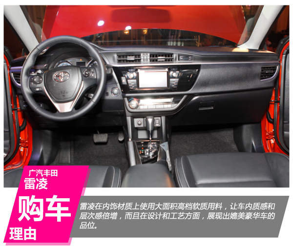 雷凌不仅在内饰材质上使用大面积高档软质用料,让车内质感和层次感倍增,而且在设计和工艺方面,展现出媲美豪华车的品位。