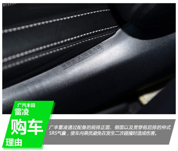 广丰雷凌通过配备的前排正面、侧面以及贯穿前后排的帘式SRS气囊,使车内乘员避免在发生二次碰撞时造成伤害。