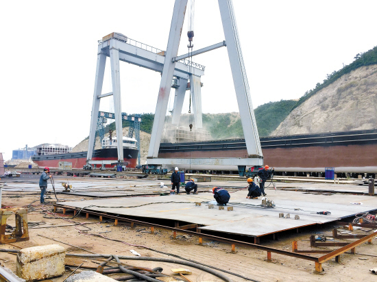 4月18日,11000米深渊器科考母船“张謇”号在温岭松门天时造船有限公司,举行了简单的铺设龙骨仪式。