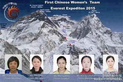 中国女子登山队部分队员。