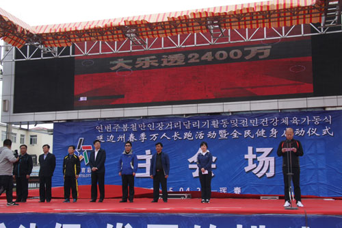 另外,当日,由延吉市人民政府主办的2015年“中国体育彩票杯”春季万人长跑活动在延吉国际会展·艺术中心广场举行,活动以延吉国际会展·艺术中心广场为起点,途经龙东街、长白山路、龙进街、天池路折返,全程约3公里。