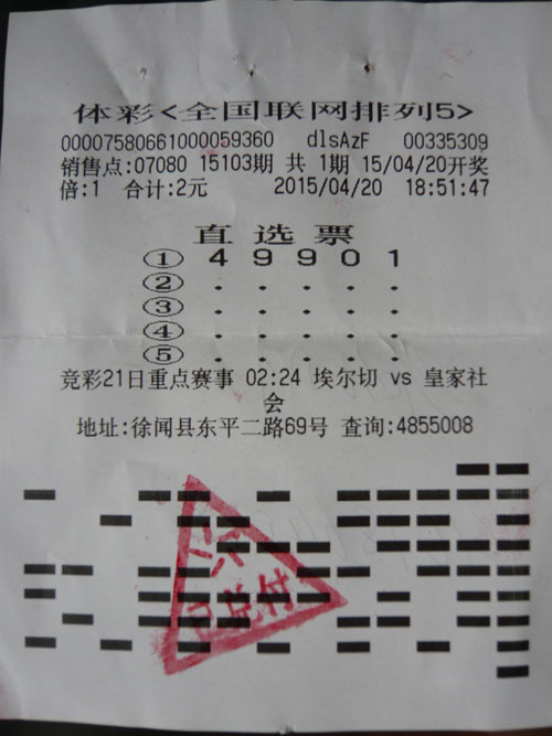张先生是四川人,在广东湛江工作已经有好几年了。2004年,“49901”这组号码曾经开过头奖,他当时投注了排列5“49903”和排列3“499”,排列5差一个号,排列3则中了1000元。这以后,他就下定决心用“49901”投注排列5,直到开出为止。