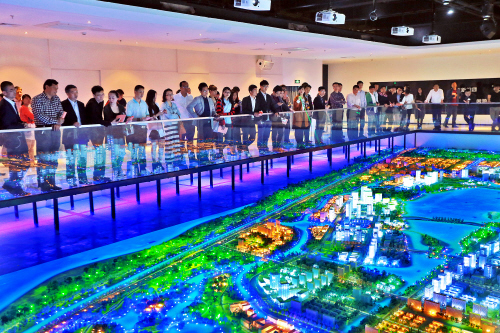 图为4月28日上午,参加新生代企业家台州行主题活动的青年企业家们参观台州湾循环经济产业集聚区规划展示馆。记者李明锦摄