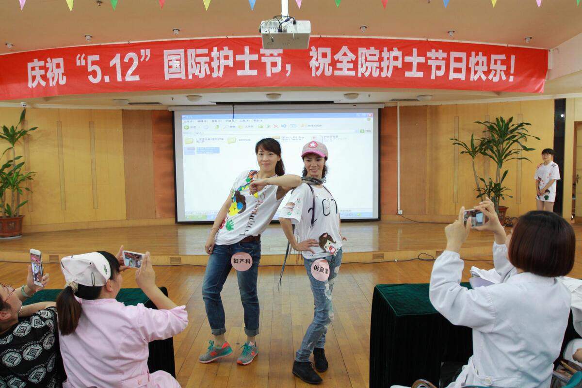 今年5月12日是第104个“国际护士节”。5月7日,台州市肿瘤医院精心准备了T恤创意彩绘、视频纠错和暴走等节目,庆祝“国际护士节”。图为护士们身穿现场亲手彩绘的T恤走秀。