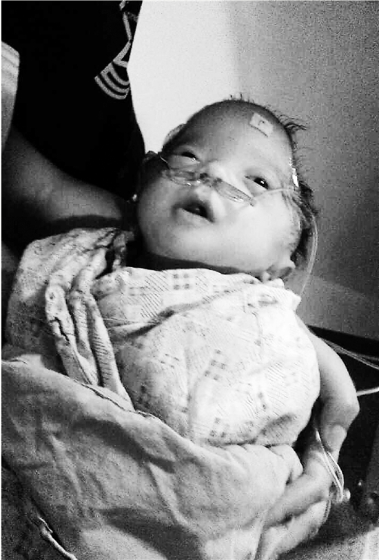 “一进去,医生就提醒我做好心理准备,说我的孩子呼吸急促,头部有畸形。我整个人都呆住了。”杨绪周说,医生建议将孩子送到省儿保接受治疗。