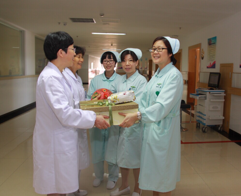 5月12日,第104个“国际护士节”。台州市肿瘤医院亲切慰问全院护士。图为院长助理黄小飞和护理部一道,为一线护士送上书籍等礼品,并致以节日问候。