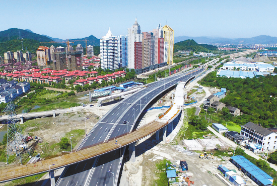 昨日,雨过天晴空气清新,从空中俯瞰台州内环线一号立交桥与周边的建筑互相映衬。据介绍,内环快速路全长约30公里,内设9个立交桥,双向六车道,建成后将成为三区间唯一的快速道,也是首条不设红绿灯的城市快速路。内环路建成后,区对区通行只要8分钟,市民驱车绕行三区仅需20分钟,预计2016年全线通车。