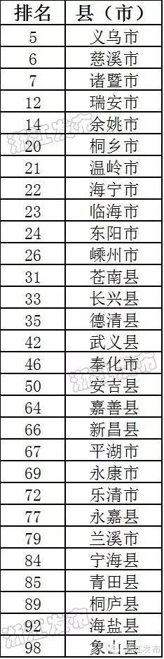 原标题: 浙江29县入围全国竞争力百强榜 大家赶紧看看家乡上榜没