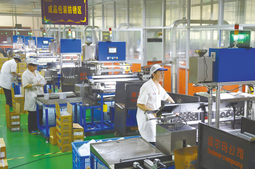 昨日,在德尔玛轴承有限公司装配无尘车间内,工人们正在抓紧赶制生产308轴承订单。