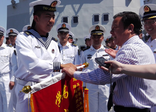 5月12日上午,经过一个多月的艰难寻找,60多岁的倪万真登上鲁山舰,在身着雪白水兵服的海军士兵们热烈的掌声中,亲手将早就做好的锦旗送到王志斌的手中。