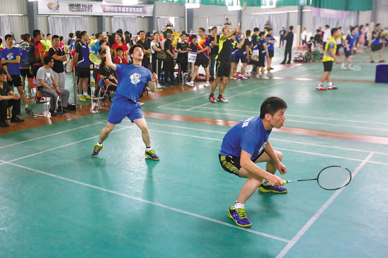 昨天,2015“羽林争霸”红牛城市羽毛球赛华东赛区台州站在椒江开打。本站比赛共吸引了32支业余羽毛球队参赛,他们将在两天的比赛中争夺最后的冠军。台州站的冠军将于6月中旬参加在江苏南京举办的大区赛。最后获得全国冠军的队伍将获得赴印尼为2015羽毛球世锦赛开球的资格。