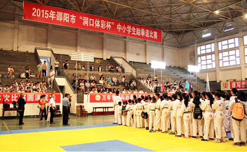 5月17日,2015年邵阳市第七届中小学生跆拳道比赛在洞口体育馆圆满落幕。