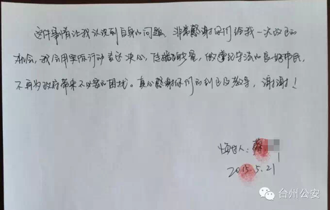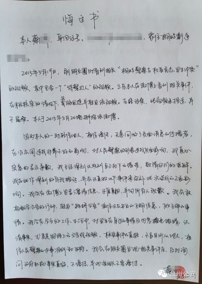 原标题: 传播谣言 她悔恨万分 从丽水跑到台州投案自首