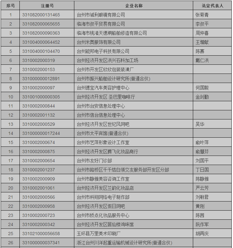 原标题: 台州1223户企业将接受公示信息核查 目前151家不合格