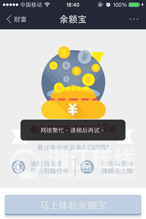 “请求超时,请稍后再试。”5月27日下午,大批网友反映,支付宝出现网络故障,无法登陆,转账、付款……与此同时,打开余额宝后,连余额也不能显示。网络无法链接?到底出了啥问题?