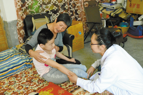 5月29日是中国计生协会成立35周年纪念日,天台县三合镇围绕计生特殊家庭的困难和迫切需求,开展了以“情暖计生,爱心助航”为主题的帮扶活动。图为当地医疗卫生组为一位脑瘫孩子送医送药。