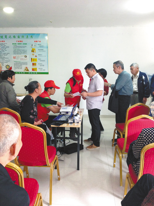 这个盖着大红章的宣传单赢得了在场老年人的信任,共有几十位中老年人在女孩的空白名单上登记了自己的姓名、住址和联系电话,女孩表示,这份名单将会递交给上级审核,申请赞助,申请下来以后会登门送上领取卡。然后,就可以凭卡免费领到物资了。