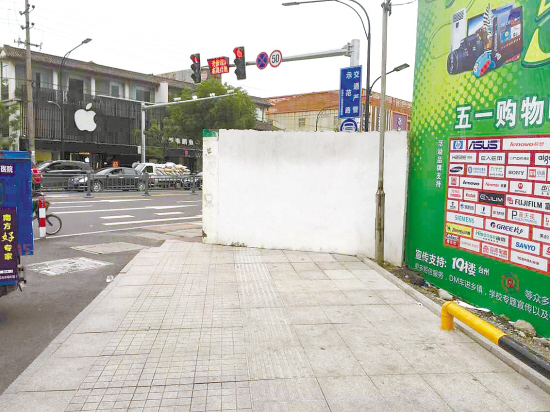 “盲人走到这里,岂不是要撞倒墙上了?”王先生不免有些担心。记者了解到,位于台州电子数码城正门外的围墙,存在已有数年,里面围着一块空地,有市民告诉记者,这片预留空地可能用于其他公共设施的建设。