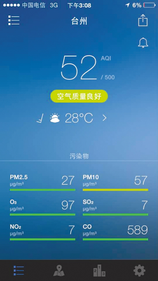 路桥市民金先生每天早上出门前,都会打开手机先看看空气质量指数,决定是不是戴口罩,能不能带孩子出去玩。“光靠眼测辨别是不是空气污染似乎也不准,有时候太阳很好,没风,空气质量不一定好;而有时候阴天,也不见得空气质量不好。手机里很多空气质量软件监测的数据,有时候指数差几十,空气质量就有质的不同。到底该信哪个?”金先生说。