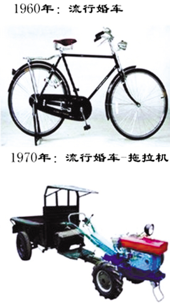 上世纪六七十年代,新人结婚时,有一辆三轮车就称得上是豪华婚车了,许多新娘都是新郎骑着自行车驮回家的。